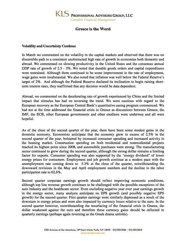 Advisorselect 2015 Second Quarter Review Greece Is The Word Volatility And Uncertainty Continue